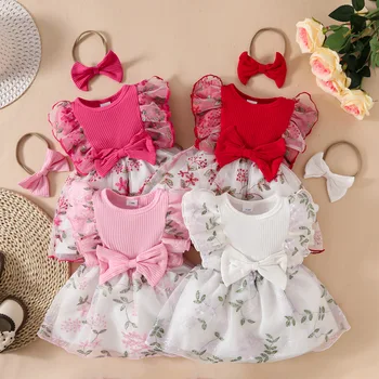 2025 New Style O-Neck Mesh Dress for Girls Embroidered Flowers and Ruffles Summer Girls Dress for 0-2 Years Old Babies