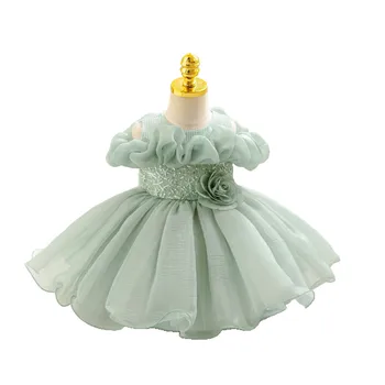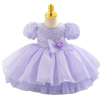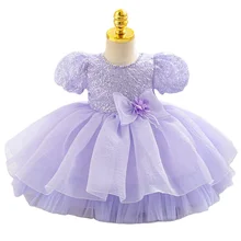 New In-Stock Girls' Summer Princess Dress Puffy Yarn Cake Sequins Layered Silhouette Solid Baby's Birthday Treasure Dress