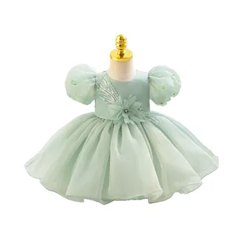New Children's Princess Dress for Graduation Evening Girls Baby Puffy Tulle Cake Dress Button Satin Summer Clothes